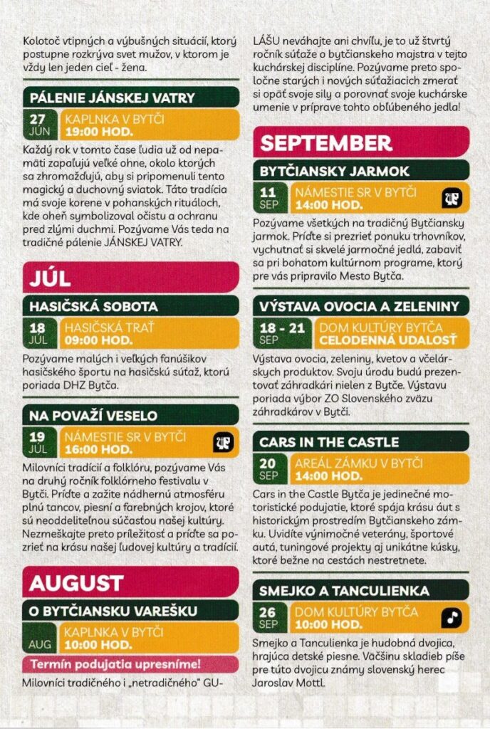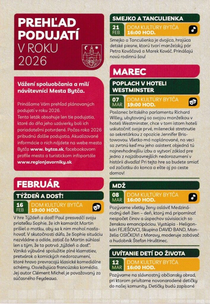 Bytča v roku 2026 ponúkne viac než len podujatia. Ponúkne dôvody stretnúť sa, zabaviť sa a byť spolu. Stačí si len vybrať dátum a prísť.