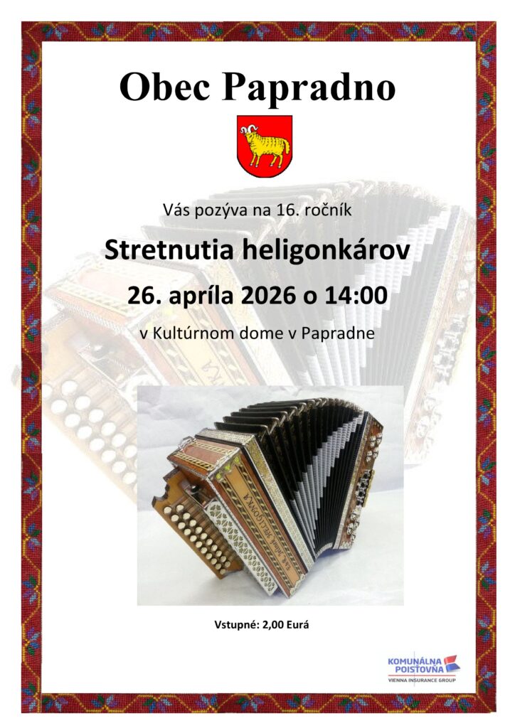 Kultúrny dom v Papradne sa v nedeľu 26. apríla 2026 o 14.00 hodine zaplní hudbou, spevom a srdečnou atmosférou. Obec pripravila už 16. ročník Stretnutia heligonkárov, ktoré každoročne láka nielen domácich, ale aj návštevníkov zo širokého okolia.