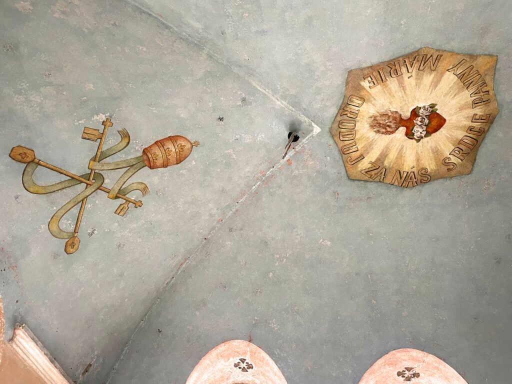 Nad klenbami sú ornamenty. Všetko sú to pôvodné maľby, ktoré boli zakryté pravdepodobne desiatky rokov.