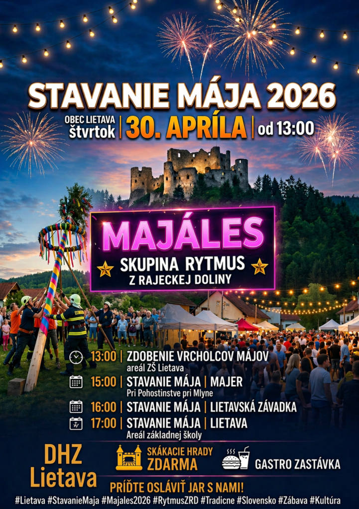 Obec Lietava pozýva obyvateľov aj návštevníkov z blízkeho i vzdialenejšieho okolia na tradičné stavanie mája, ktoré sa uskutoční vo štvrtok 30. apríla 2026.