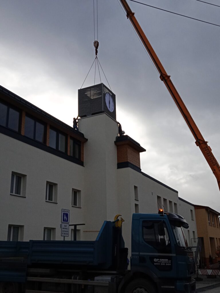 V rámci finalizácie nadstavby a prístavby budovy boli nainštalované vežové hodiny, ktoré sa stanú nielen praktickým pomocníkom, ale aj výrazným architektonickým prvkom centra obce.