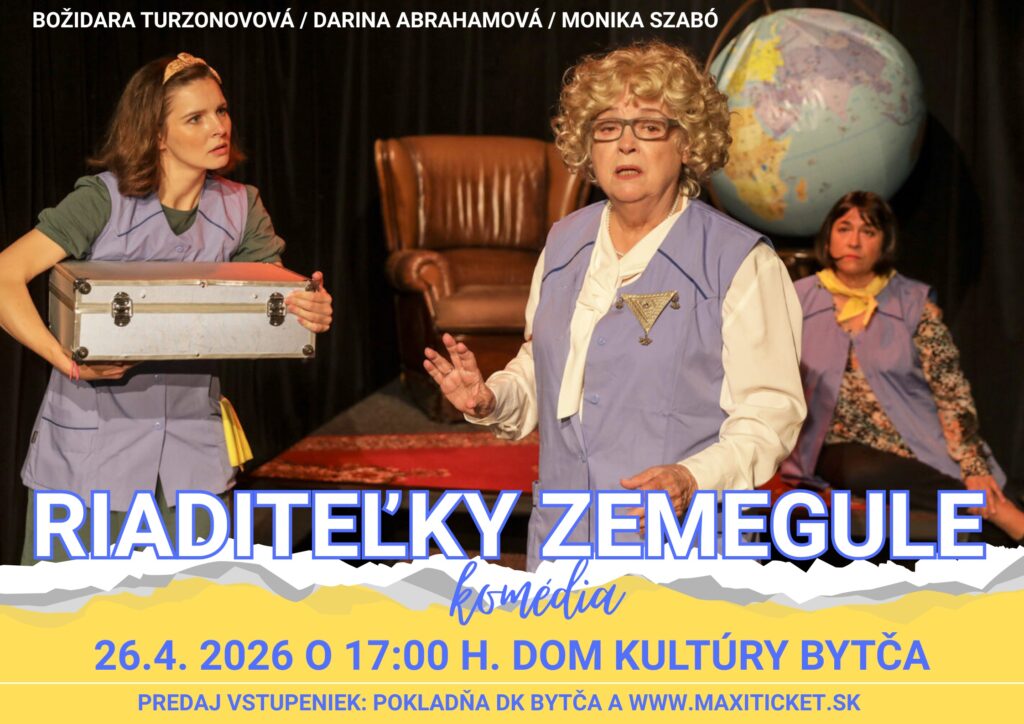 V Bytči sa chystá večer, ktorý poteší milovníkov divadla aj tých, ktorí si chcú oddýchnuť pri kvalitnej komédii. V nedeľu 26. apríla 2026 o 17:00 hodine uvedú v Dome kultúry predstavenie Riaditeľky zemegule, ktoré prináša nielen humor, ale aj trefný pohľad na realitu dnešných dní.